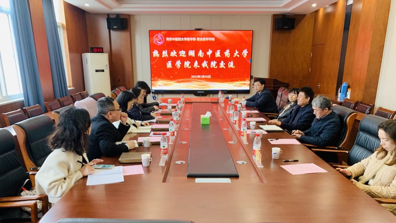3月30日,我院院长庹勤慧带队,党委副书记任婷、副院长唐群等一行6人前往南京中医药大学医学院·整合医学学院调研学习。