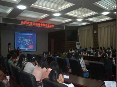 6月7日下午,美国耶鲁大学医学院万腊香教授应邀在华体网页版页面登录行政办公楼一楼会议厅讲学。校长廖端芳教授、医学院院长张秋雁教授与医学院教职工一同听取了万教授的讲座。