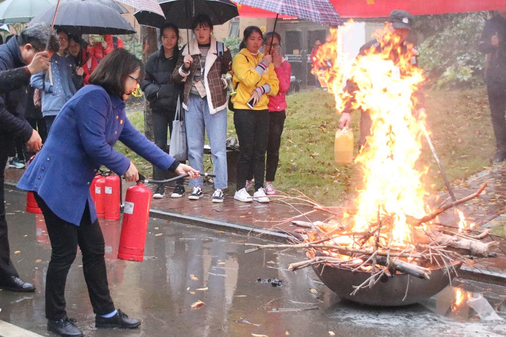 首先是在2105、2106教室举行的消防知识讲座,消防教练从火灾起因、火灾后果和火灾发生时我们应该如何做三个方面进行讲解,不仅引起了大家对火灾防患的重视,也让现场的同学和老师们收获良多。随后教练又给大家示范如使用防毒面具、“灭火宝”等新型逃生灭火工具,给我们带来了灭火新思路。随后,在22栋公寓楼下举行了消防疏散及灭火演习。在专业人员的指导下同学们积极配合,迅速疏散并抬出伤员,掌握了基本的逃生互助方法。最后领导和老师们在专业人员的指导下使用灭火器进行了模拟灭火,学生们也积极参与其中。