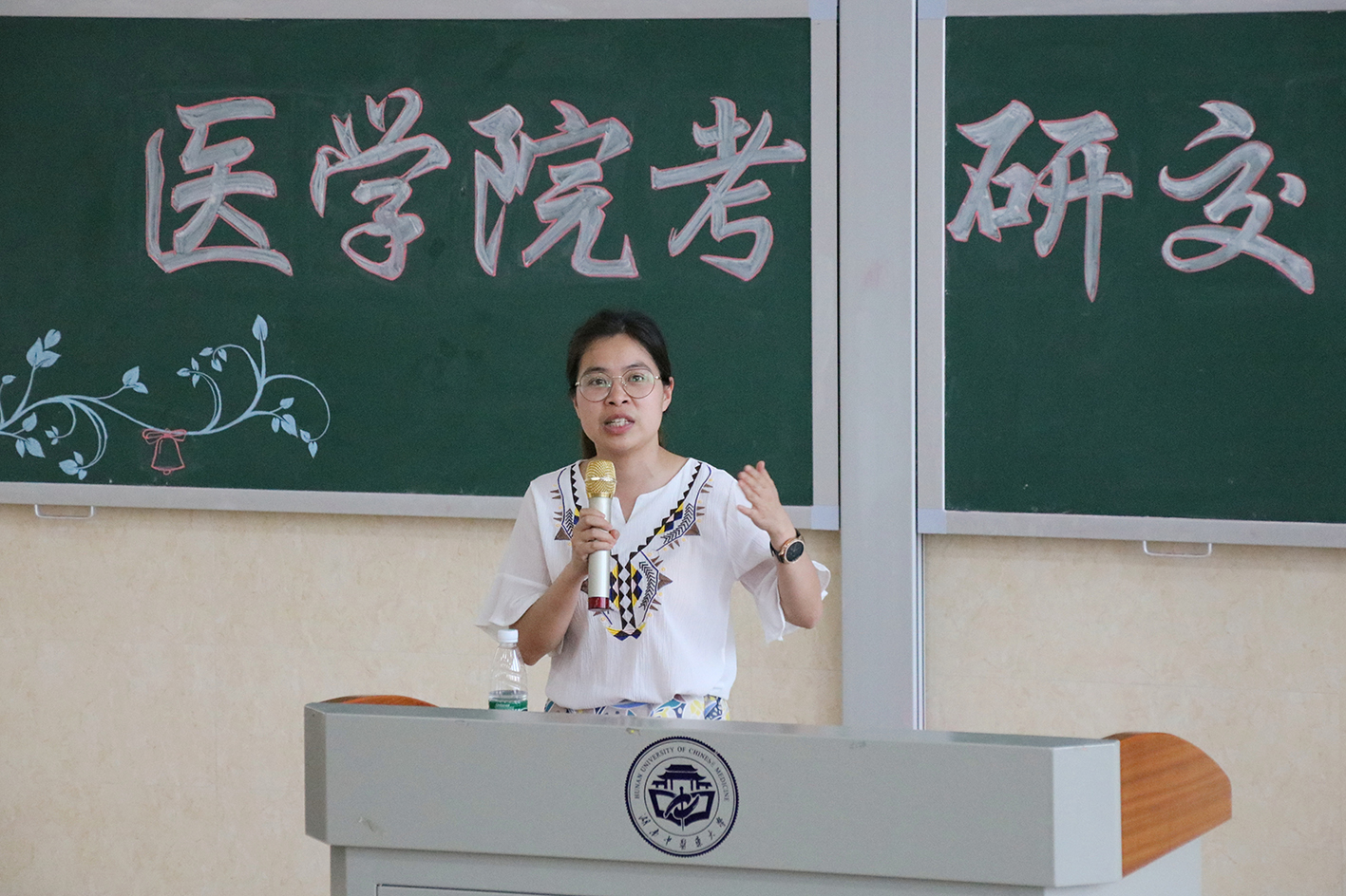 5月14日晚,湖南中医药大学医学院“医学考研路,且行且相伴”考研交流会在3416教室顺利举行。医学院党委书记文红艳教授、副院长庹勤慧教授、研究生院招生办主任肖岚博士、医学院学生管理科老师代表以及学生代表参加了此次活动。