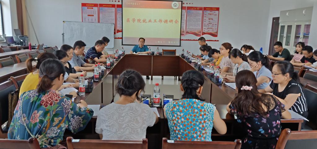 6月28日下午,大学副校长葛金文前往医学院对就业工作作专题调研,医学院、招生就业处负责人及医学院各教研室主任参加了座谈会。