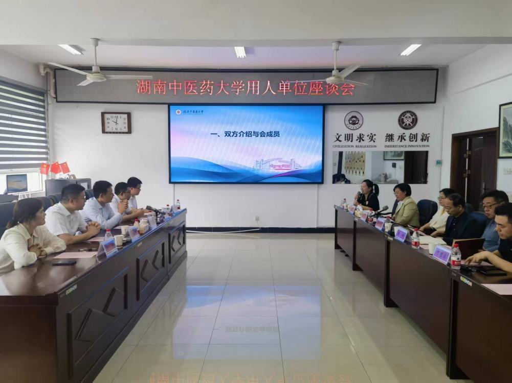 为贯彻落实党中央、国务院关于高校毕业生就业工作的决策部署,促进毕业生高质量就业,4月24日,华体网页版页面登录与扬子江药业集团湖南惟新医药有限公司在含浦校区药学院会议室开展访企拓岗交流座谈会。校党委委员、副校长廖菁、湖南惟新医药有限公司总经理曹玉龙、华体网页版页面登录医学院院长庹勤慧、药学院院长王炜、药学院党委副书记贺哲淳、医学院党委副书记李玉冰、药学院副院长林丽美及相关人员参加了会议。