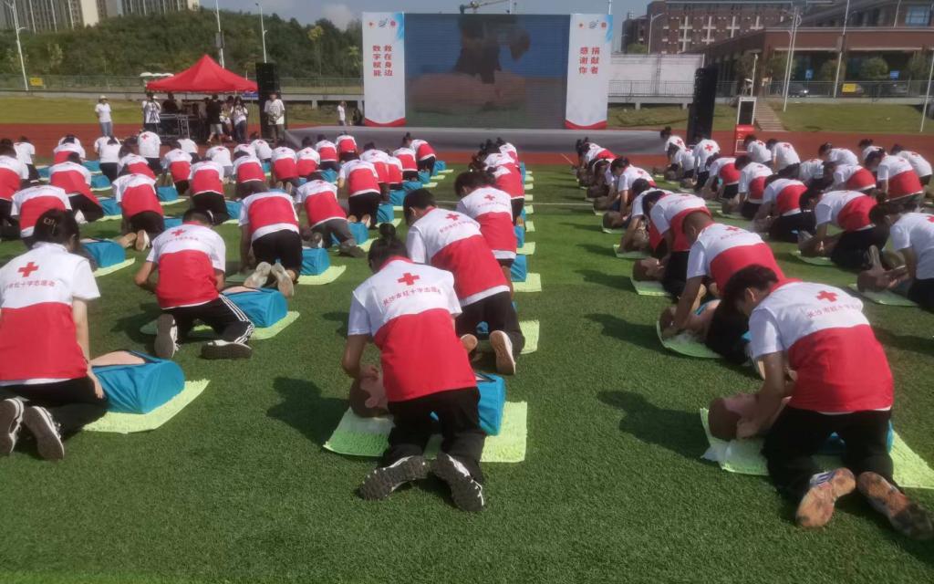 活动现场,市红十字会联合学校开展应急救护情景剧表演和CPR+AED百人演练,营造“人人学急救,急救为人人”的良好社会氛围,助力弘扬“学急救、懂急救、会急救”的社会新风尚。